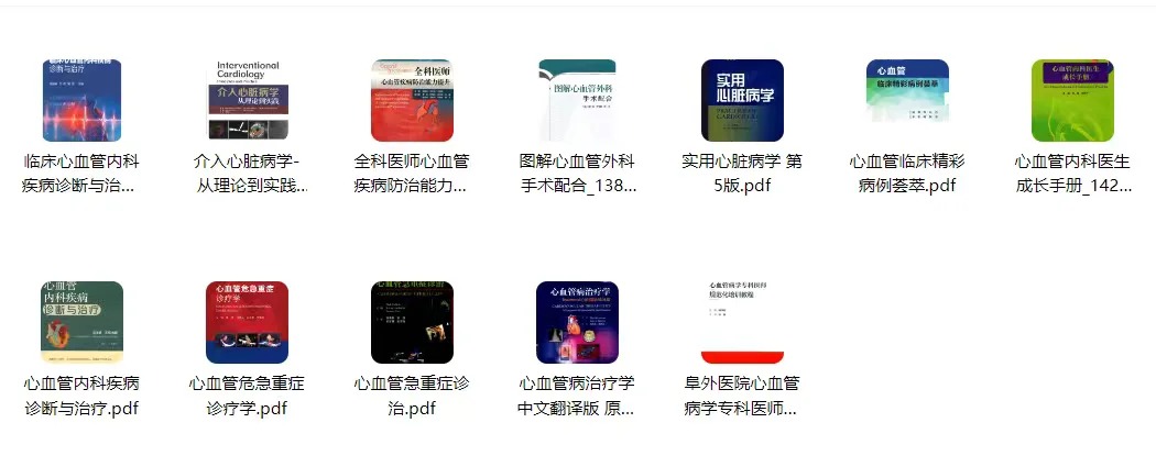 不用再全网瞎找心血管专业书籍,不用再为临床缺参考、学习缺资料发愁,这12本心血管系列丛书PDF合集,直接一次性安排到位,心血管人直接锁死,早用早提升,专业能力狠狠进阶,临床实操更有底气!