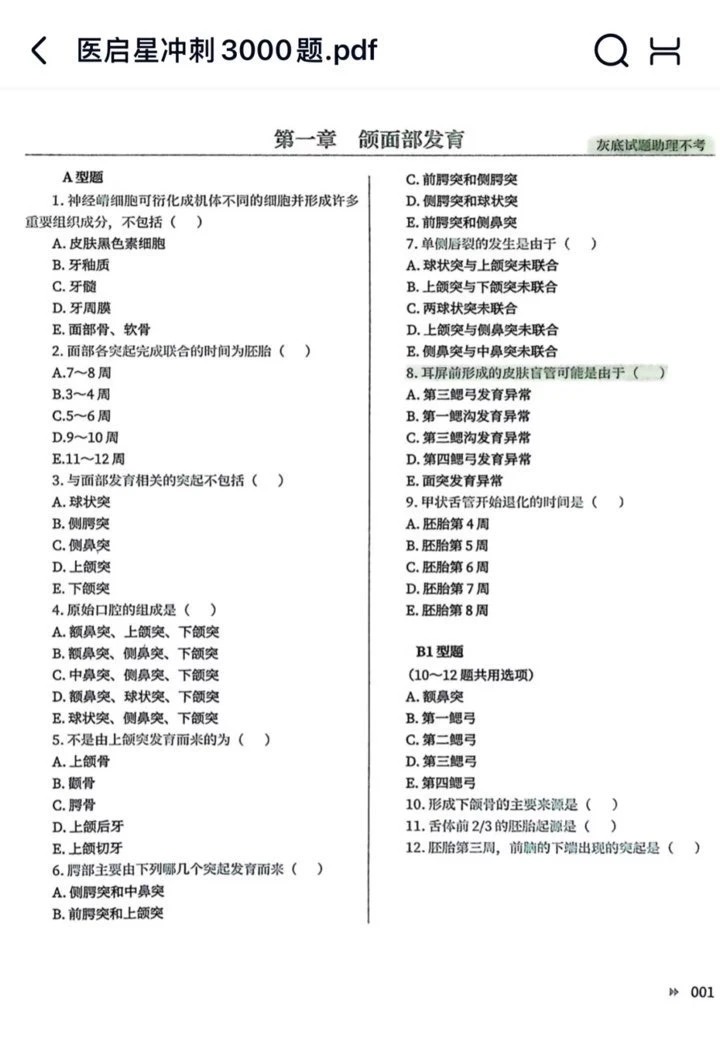 懂的都懂!口腔医考冲刺期,选对刷题资料比盲目努力强100倍🔥 这套启星冲刺3000题,专门适配口腔执业(含助理)考生,不管是冲刺刷题、考点复盘,还是易错点突破,都能精准踩中需求,高清PDF版本,手机、电脑随时刷,不用扛厚重习题册,实用性拉满,再也不用到处找零散题库、浪费时间内耗,直接解放双手!