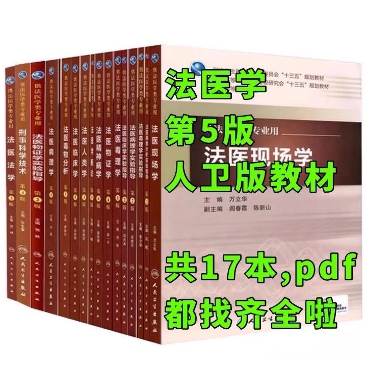 全套17本,人卫权威出品,懂的都懂,第5版最新版本,从基础到实践、从现场到实验室,法医学全领域无死角覆盖,含金量拉满到炸,没有一句废话、没有一点水分,纯纯干货暴击!电子版便携可查,手机、电脑随时能学、随时调用,从法医现场学到物证学,从病理学到毒理学,全方位覆盖法医学核心知识,法医学学生打基础、科研党搞研究、从业者提技能,一套搞定所有需求✅ 谁囤谁赚、血赚不亏,不囤真的亏麻!