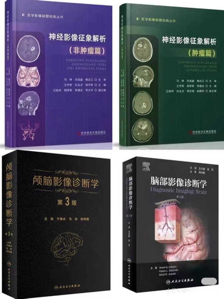 除此之外,还有《神经影像征象解析》(肿瘤+非肿瘤篇)、《颅脑影像诊断学》等10本硬核神书,每本都干货炸裂、含金量拉满,覆盖临床、诊断、解剖全领域,从基础到进阶,一站式满足所有学习需求,囤一套顶N套,谁囤谁赚!