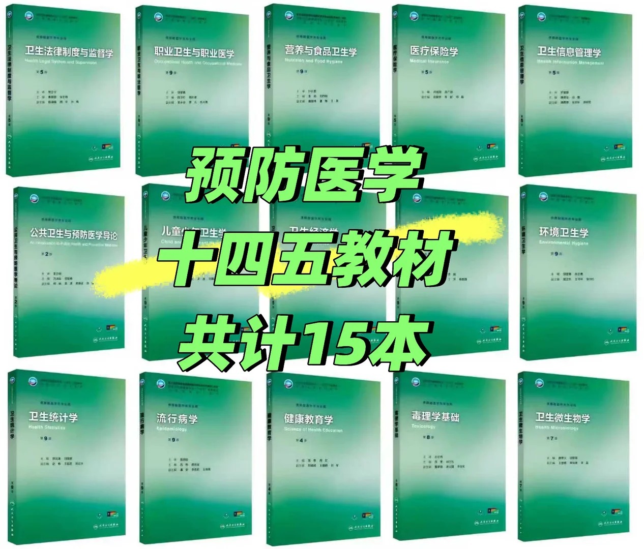 ✅ 还有《毒理学基础》《儿童少年卫生学》《卫生经济学》等15本全套教材,从理论到实践全覆盖,一站式搞定预防医学全学科知识点,不用再东拼西凑找资料!