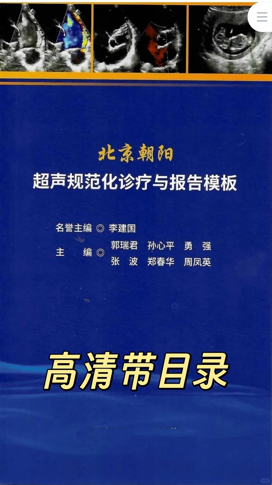 ✅ 全网难寻:《北京朝阳超声规范化诊疗与报告模板》高清带目录,由郭瑞君教授主编,按照三甲医院标准编写,12大板块全覆盖,高清影像+海量病例,专为超声相关人群量身打造,错过再等N年,不入手亏麻,谁不入手谁是大冤种、谁不入手谁亏麻到哭死!