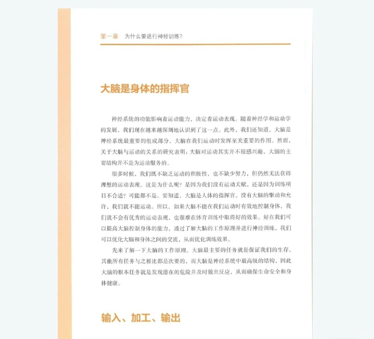 1. 科学创新,打破认知壁垒:核心亮点在于揭秘大脑与运动表现的关联,打破“只练肌肉不练脑”的传统误区,阐述大脑如何通过神经系统精密计算调控运动动作,结合感觉统合训练逻辑[superscript:1],从根源解锁运动潜能,让训练更精准、更高效,实现大脑与身体的协同发力。
