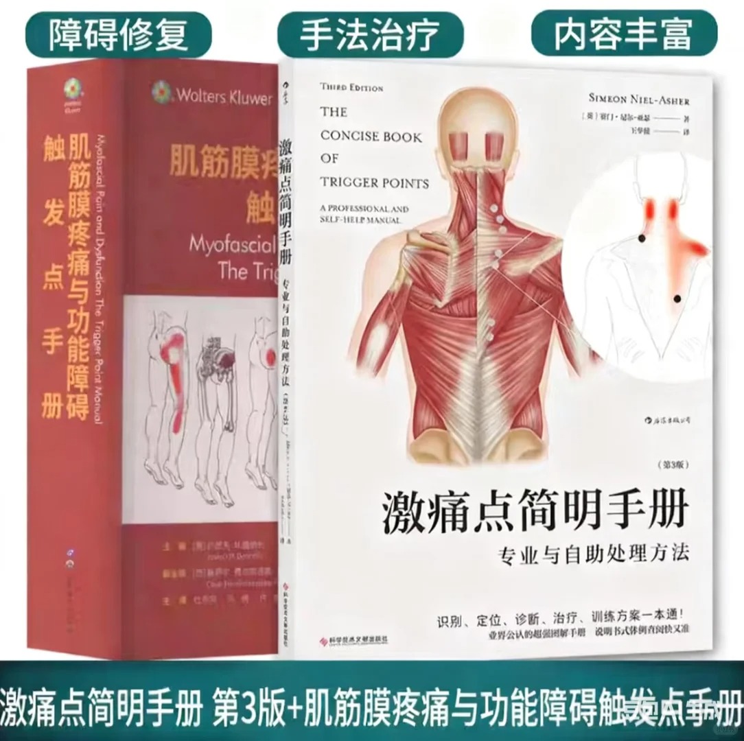 【2册PDF】《激痛点简明手册 第3版》+《肌筋膜疼痛与功能障碍触发点手册》,完美契合这一需求,两本书互补联动,构成一套完整的激痛点解决方案:前者口袋便携、图文速查,帮普通人快速定位痛点、实现疼痛自救;后者权威系统、实操详尽,为专业从业者提供诊断与治疗的权威参考,完美覆盖日常自救、专业提升、学习备考等多场景需求,不管是新手还是专业人士,都能精准适配。