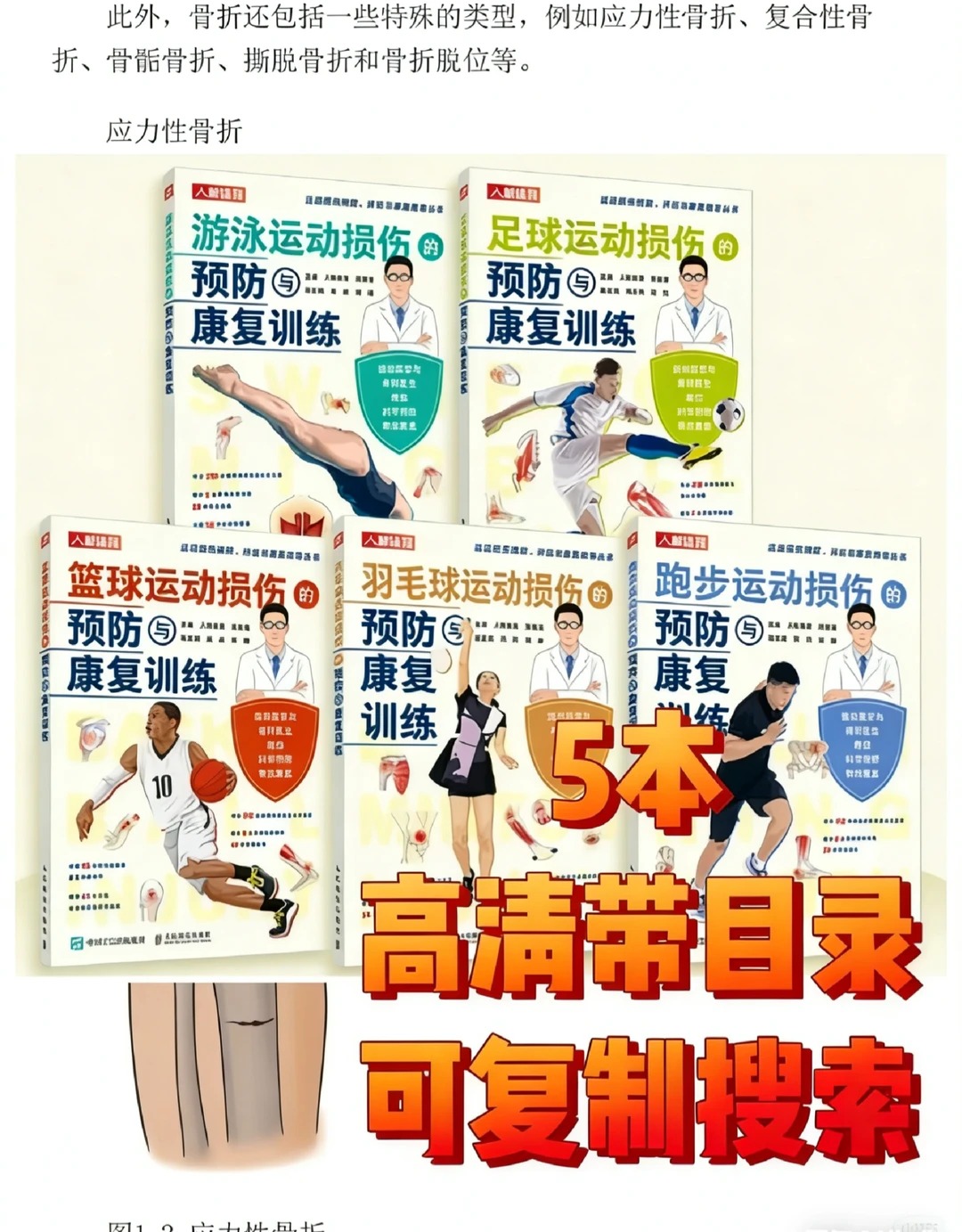 • 《跑步运动损伤预防与康复》:针对跑步常见的“跑步膝”、脚踝反复伤等问题,提供科学的预防方法与康复训练,让跑步爱好者跑得更久、更安全。