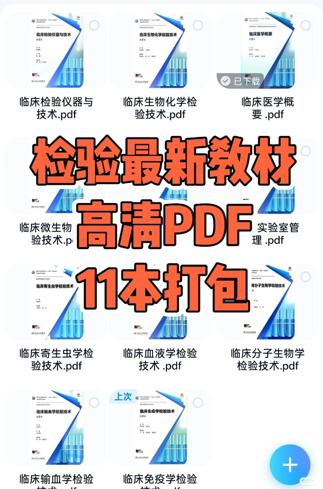 对于检验师、检验职称备考者、医学检验专业学生,以及科室培训负责人,还有所有深耕临床检验领域、想提升专业能力、高效备考、规范工作的检验同仁而言,一套系统、全面、最新、便捷的检验科核心教材,是日常工作、备考复习、科室培训的核心关键。而这份检验科第二版核心教材电子版合集,正是这样一套“能备考、能工作、能培训、能学习”的封神之作,11本核心教材一键配齐,全部为最新第二版,高清PDF格式,从基础检验到分子生物学,从血液学到实验室管理,全方位覆盖检验专业全知识点,画质清晰、便捷易查,彻底解决相关人群“找不全教材、版本老旧、电子版模糊、用途单一、搜罗耗时”的核心痛点,不管是备考复习、日常查询,还是科室培训,都能精准适配,一站式满足多元需求,为检验人专业提升、备考上岸、规范工作提供强大支撑!