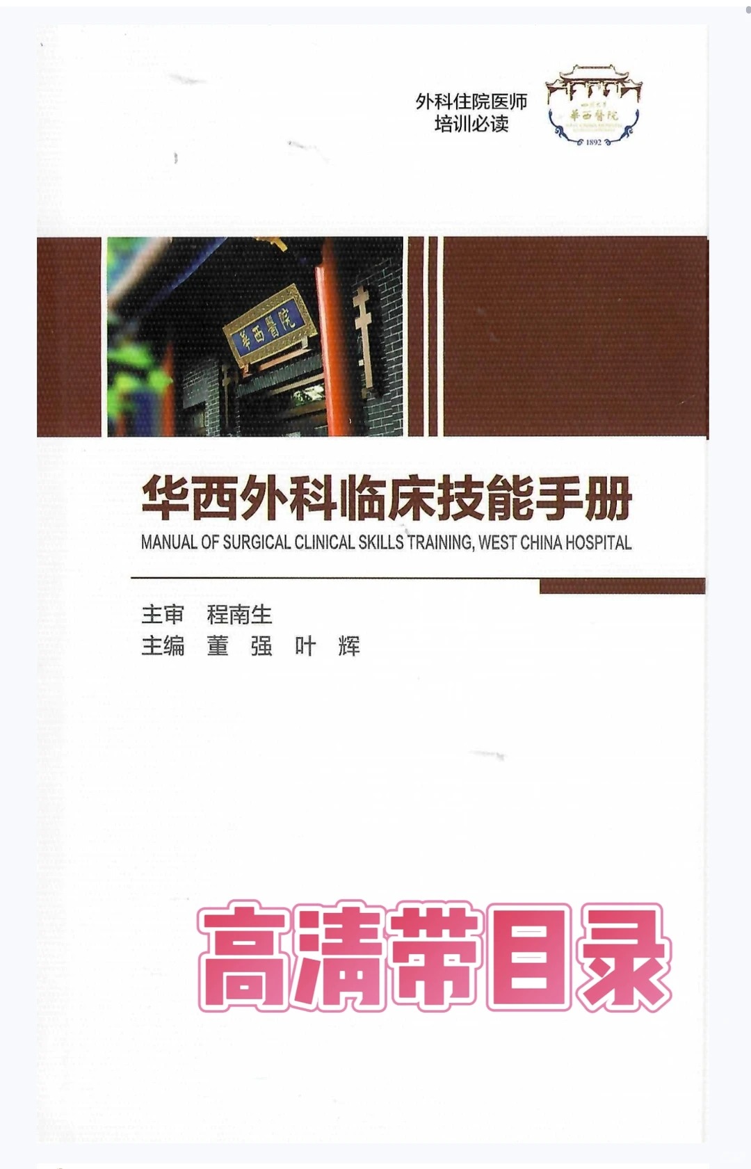 • 核心内容:《华西外科临床技能手册》,由华西医院权威专家编写,外科临床常见技能全覆盖,详细拆解每一项操作流程,全面解析评估处理要点,适配“医学生→住院医→主治”进阶路径,是住院医师培训必读手册,实战性与权威性拉满。
