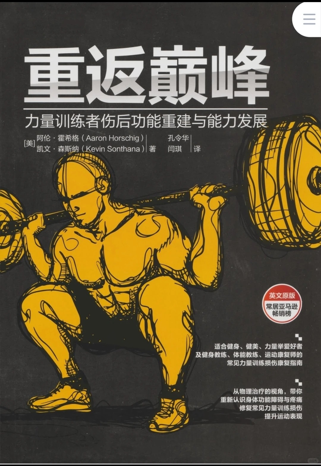 健身人集合!康复神器来了💥 《重返巅峰:力量训练者伤后功能重建与能力发展》,原版中文版+高清彩色+图文易懂,帮你告别伤病、科学康复、突破瓶颈,重返健身巅峰,速冲、速冲、速冲!
