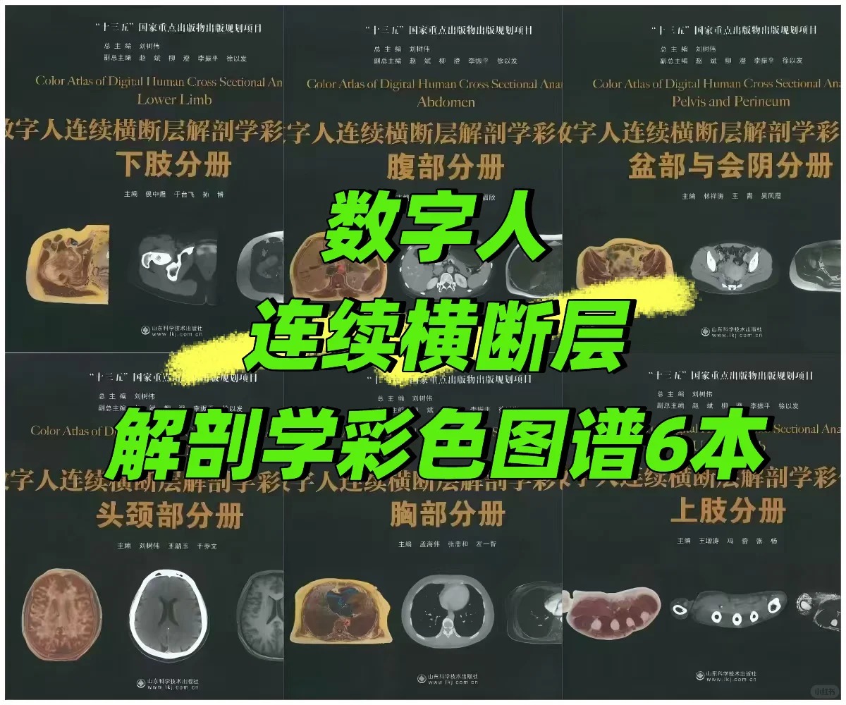 救大命!这套“数字人连续横断层解剖学彩色图谱”6本PDF,直接把所有医学党、解剖爱好者的痛点一锅端✅ pdf高清电子版,每本都有高清彩色断层图,解剖结构一目了然,6本分册覆盖人体全部位,从胸腹到头颈、从上下肢,系统全面,不管是医学学生还是临床医生,这套图谱都能让你在解剖学学习上如虎添翼,闭眼入绝对不踩雷,再也不用瞎摸索!