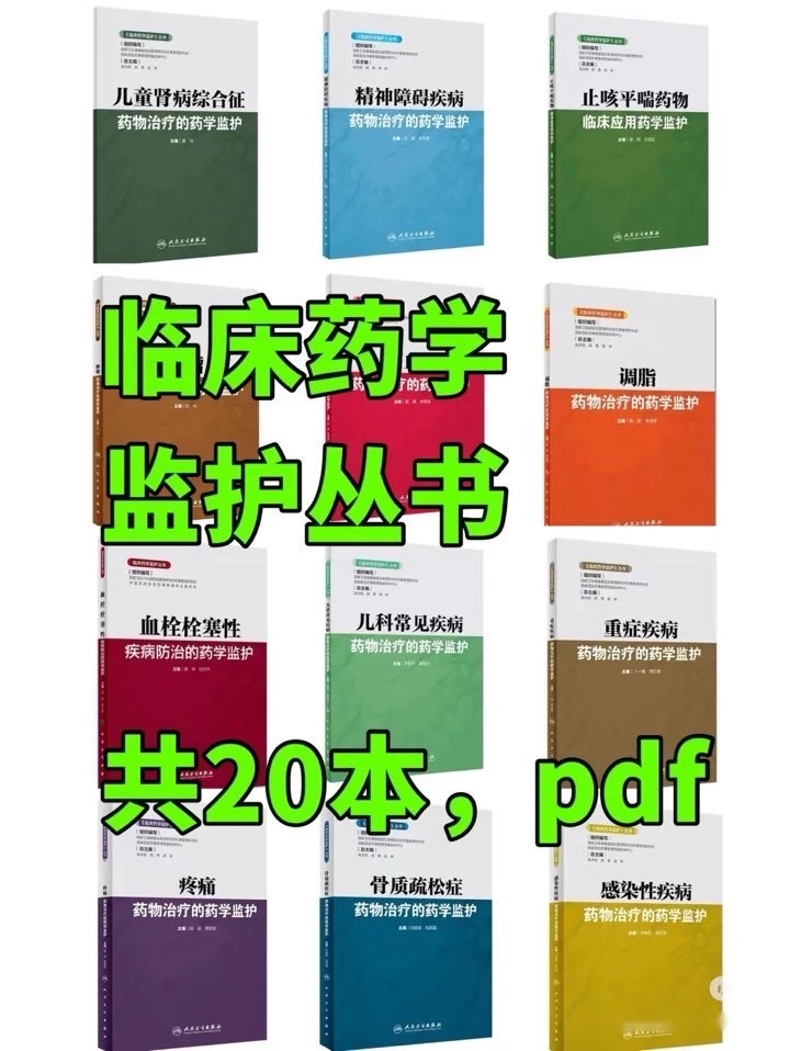 临床药师、药学专业宝子们速集合集合集合集合😭 谁懂啊谁懂啊谁懂谁懂谁懂谁懂!还在为临床药学监护搞不清方向、用药踩坑、不良反应监测拿捏不准发愁?还在东拼西凑找资料、熬夜整理监护要点、踩坑交智商税?这套《临床药学监护丛书》20本PDF,直接把各个病种的药物治疗监护掰开揉碎、讲得明明白白,再也不用瞎摸索、踩坑内耗、emo到崩溃了😭