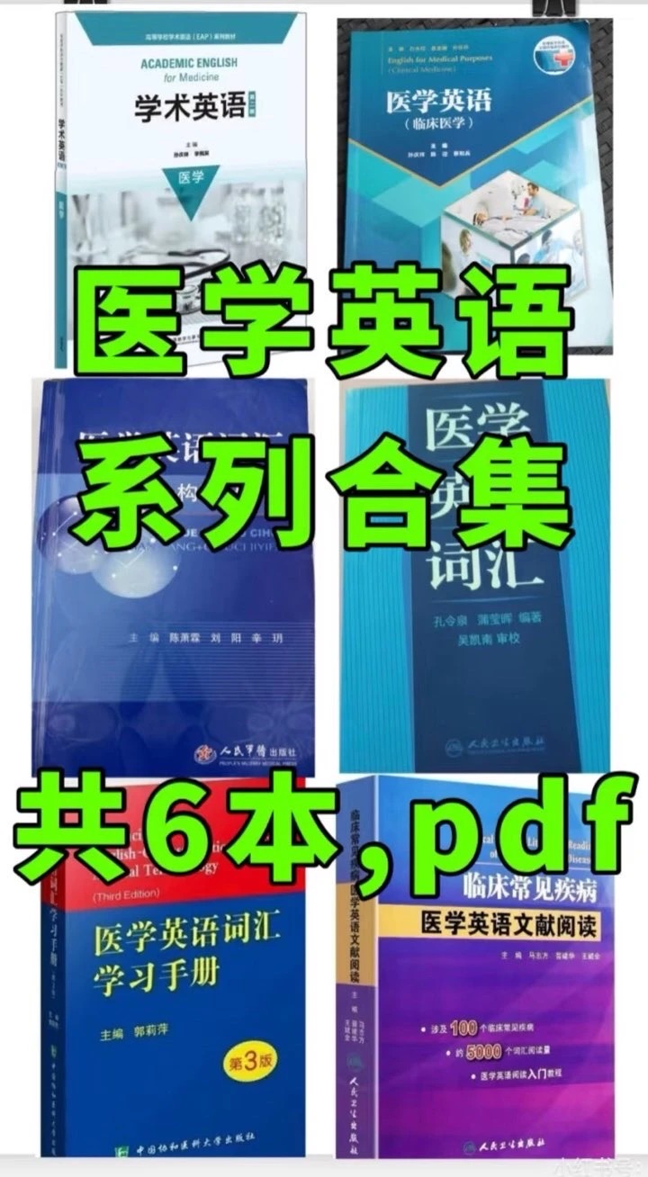 直到挖到这套6本医学英语宝藏资料合集,全找齐,直接救大命、直接封神yyds,没有之一、没有之一、没有之一!6本全覆盖医学英语学习全场景,涵盖学术英语、临床英语、词汇积累、文献阅读等核心模块,每本都针对性极强,详细讲解对应模块的技巧和方法,贴合医学生学习和临床实际,学练结合不内耗,手机平板随时可看可背,不用扛厚重课本遭罪,存完直接开挂,彻底摆脱医学英语学习内耗,再也不用内耗到emo、不用熬夜死记硬背、不用为词汇记不住、表达不会用、文献读不懂发愁,学习效率直接拉满,卷赢同批宝子不是梦,谁存谁赚、谁存谁赢,不存真的亏麻!