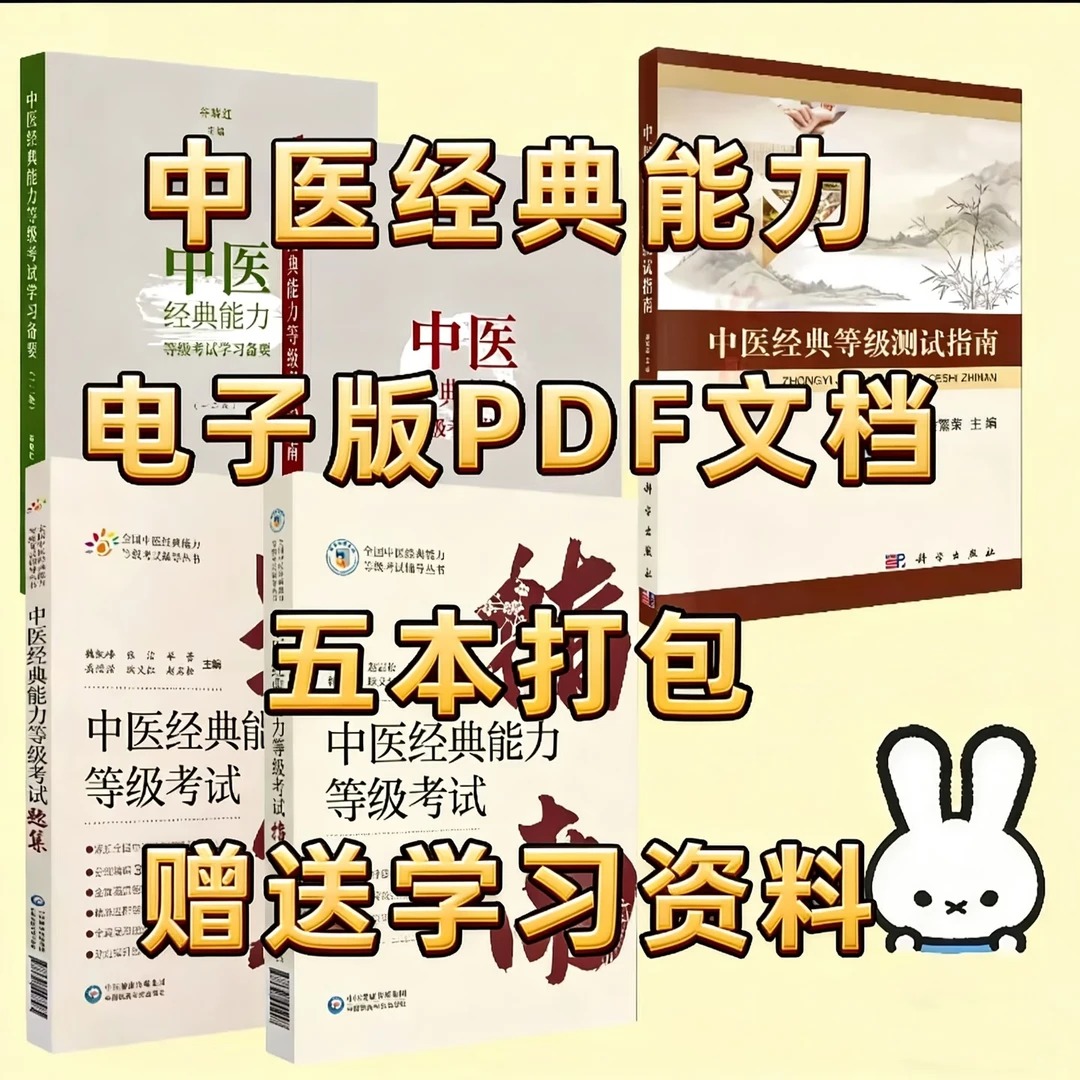 直到挖到这套中医经典考级超全资料,直接救大命、直接封神yyds,没有之一、没有之一、没有之一!每一个亮点都精准戳中我们的痛点,彻底告别中医经典备考焦虑!一套包含三本核心资料,背诵+刷题+划重点全搞定,不用东拼西凑找资料,省心又省力;资料权威靠谱,《中医经典能力等级考试指南》是官方大纲核心工具书,覆盖四个经典科目,一二级三级全都有,上千条原文逐条精解,关键词注释+提要归纳+精解分析,帮你背得懂、记得住、理解透,打牢基础就靠它;《中医经典能力等级考试题集》包含2000-3000题,完全依据官方大纲,分等级、分科目编排,每道题都有答案+详细解析,错题不怕看不懂,考前冲刺实战演练,提分超给力;《中医经典能力等级考试学习备要·一二级》由北中医党委书记谷晓红教授主编,权威背书,聚焦一二级考试358条核心原文,每条都有提要+词解+释义,重点难点一网打尽,记忆更轻松;而且是电子版,手机、平板随时可看,通勤路上、图书馆、宿舍都能学,不用携带厚重实体书,便捷又高效;适配人群也超广,中医学生、中医经典等级考试考生、中医考研党、执医考生,都能精准适配,通俗易懂、重点突出,边看边背边练边提升,不用熬夜啃晦涩的经典教材、不用东拼西凑找习题资料、不用为条文难背发愁,一套搞定中医经典学习、考级、考研、执医备考全流程,入手后直接开挂,彻底摆脱内耗,轻松掌握核心条文、解题技巧,从容应对各类中医考试,日常学习不焦虑、考试稳上岸、备考不内耗,谁入谁赚、谁入谁赢,不入手真的亏麻!