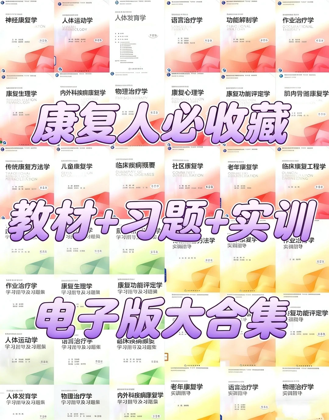 直到挖到这套【超全电子版】康复人专属书单,直接救大命、直接封神yyds,没有之一!每一处都精准戳中我们的痛点,彻底告别康复内耗!这套书单亮点拉满、实用性强,不用东拼西凑找资料,省心又省力;核心优势直击痛点,一站式搞定所有康复相关难题:✅ 一站式备齐,19本核心教材+18本配套习题+10本实训指导,47本干货满满,不用东拼西凑,备考、考证、实训一套搞定;✅ 品类齐全,教材涵盖康复功能评定学、人体运动学、神经康复学等全领域,习题精准适配每本教材,查漏补缺、巩固提升,实训指导对接实操,规范手法、提升能力;✅ 版本优质,多本第2-3版,紧跟最新学习、备考、考证标准,适配康复考试、考证、临床实训全场景,让你始终走在专业前沿;✅ 高清便捷,电子版更划算,手机平板都能看,随时随地学习,碎片时间利用起来,等车坐地铁也能偷偷进步,不用熬夜啃厚重的纸质书;✅ 适配人群极广,康复治疗师、康复医学生、康复考研党、备考党、临床康复从业者,每一个想提升康复技能、顺利上岸的人,都能精准适配,专业易懂、重点突出,边学边练、边练边提升,入手后直接开挂,轻松掌握康复核心知识、规范实操手法,从容应对考试、考证、实训等需求,学习更高效、思路更清晰、实操更规范、备考更有底气,谁入谁赚、谁入谁赢,不入手真的亏麻!