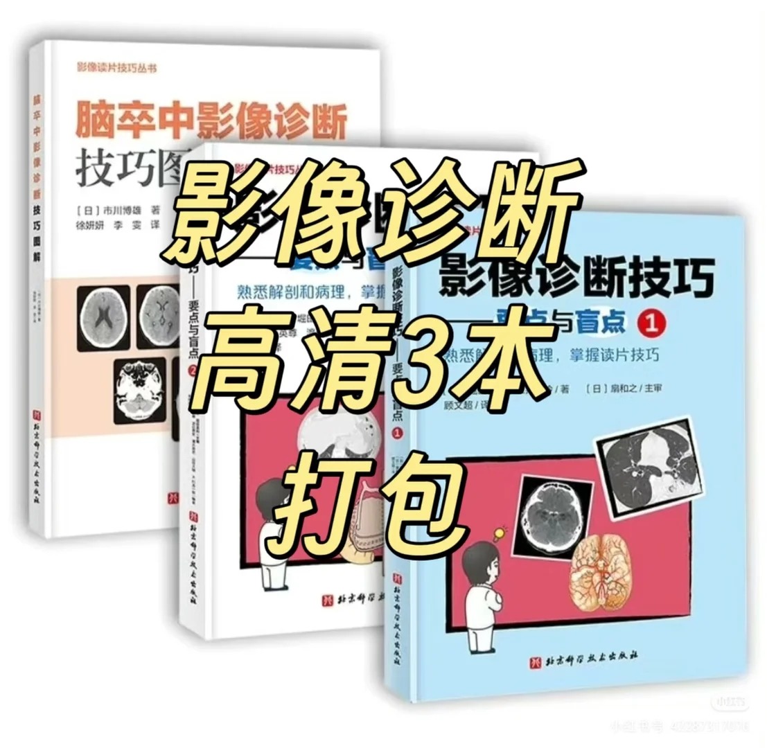 这3本影像诊断宝藏书(高清PDF),正是影像人的“阅片救星”。包含《脑卒中影像诊断技巧图解》《影像诊断技巧:要点与盲点》(1+2册),源自日本经典影像丛书,以图解为核心、实战为导向,独创清单式阅片法,覆盖脑卒中、胸片、消化系肿瘤等核心影像诊断场景,兼顾临床要点与盲点预警,从基础到进阶适配各阶段影像人,助力快速提升阅片能力,精准捕捉病灶,为临床诊疗与学习备考提供强大支撑。