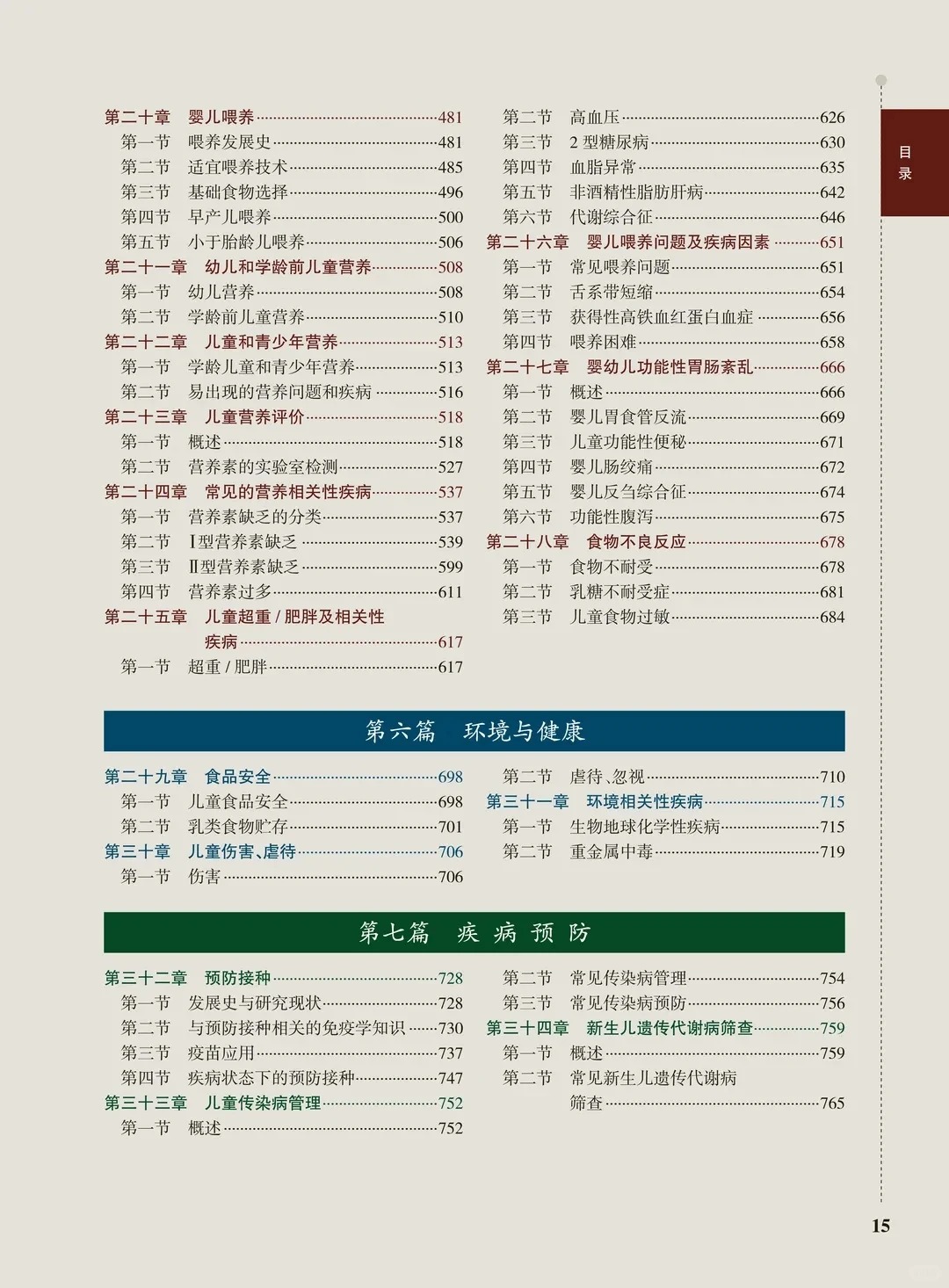 2. 内容全面,覆盖无死角 全书分为7大篇34章,从基础理论到临床实操,全方位覆盖儿童保健的所有关键领域,涵盖儿童发育、内分泌、症状鉴别、营养喂养等核心内容,一站式满足儿科从业者临床参考与宝妈育儿需求。