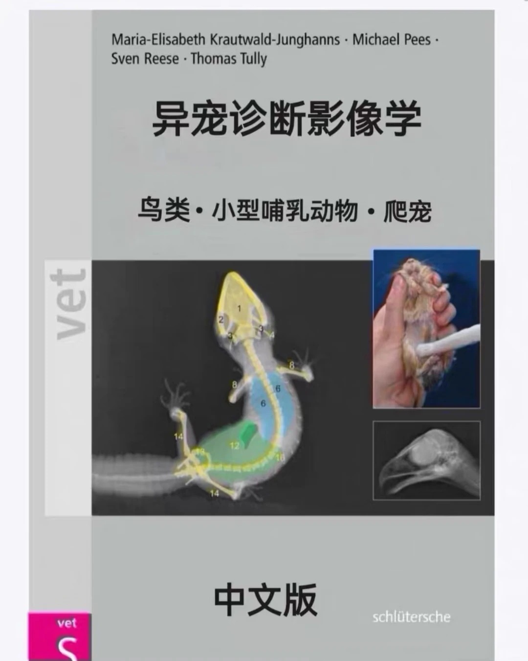 • 核心内容:《最新中文版异宠影像诊断学》(《Diagnostic Imaging of Exotic Pets: Birds, Small Mammals, Reptiles》)PDF电子版,异宠兽医领域宝藏工具书;覆盖鸟类、爬宠(蜥蜴、蛇、龟)、小型哺乳动物(兔子、啮齿类),系统解读X光、超声、CT、MRI等主流影像技术,收录1400+张高清影像插图(标注清晰),按物种+器官系统分章节,每章附设备要求、安全注意事项等临床干货,提供中文版(AI+人工)+中英对照版,超清画质。