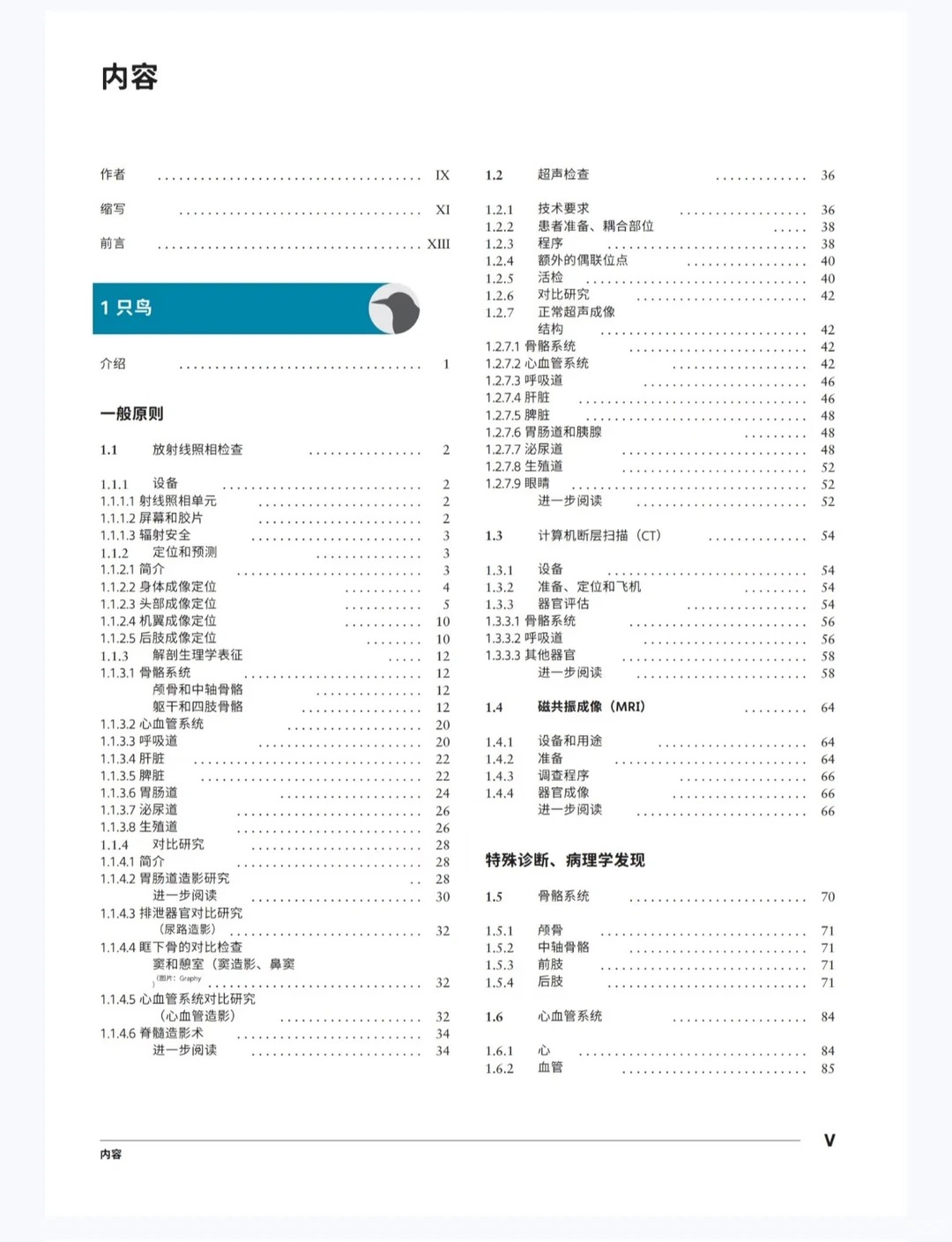 除此之外,这本书亮点满满、实用性拉满:贴合异宠兽医临床实操需求,全是临床高频干货,学完就能用;物种全覆盖,鸟类、爬宠(蜥蜴、蛇、龟)、小型哺乳动物(兔子、啮齿类)主流异宠一本搞定,不用拼凑资料;影像技术全解读,系统讲解X光、超声、CT、MRI等主流影像技术,结合异宠生理特点说明适用场景,比如X光适合骨折、异物诊断,超声适合内脏检查,CT适合三维重建辅助诊断,MRI适合软组织及神经学问题诊断,帮你对症选择检查方式;1400+张高清影像插图,超清画质,解剖结构标注清晰,快速区分正常与病变,提升诊断准确性;编排科学合理,按物种和器官系统分章节,临床问题快速定位,节省诊疗时间;双版本PDF加持,超清画质,中文版(AI翻译+人工校对)+中英对照版,兼顾专业性与便捷性,随时随地查阅;细节拉满,每章附影像检查的设备要求、安全注意事项(含异宠麻醉相关注意)、摆位技巧、适应症判断等实用内容,避开临床误区;结构清晰易吸收,逻辑严谨、层次分明,小白能入门,资深者能精进;适配广泛,不管是异宠医生、兽医从业者,还是医学生,都能从中获益,兼顾临床、学习、备考多场景。
