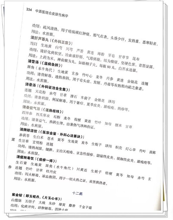 比如湿疹,不仅给西医抗过敏完整方案,还附疏风清热的中药方,像消风散、清暑汤的详细用法、剂量、注意事项都写得明明白白,专门解决方药用法记不住的痛点,临床直接抄作业,再也不用自己瞎摸索、瞎琢磨!