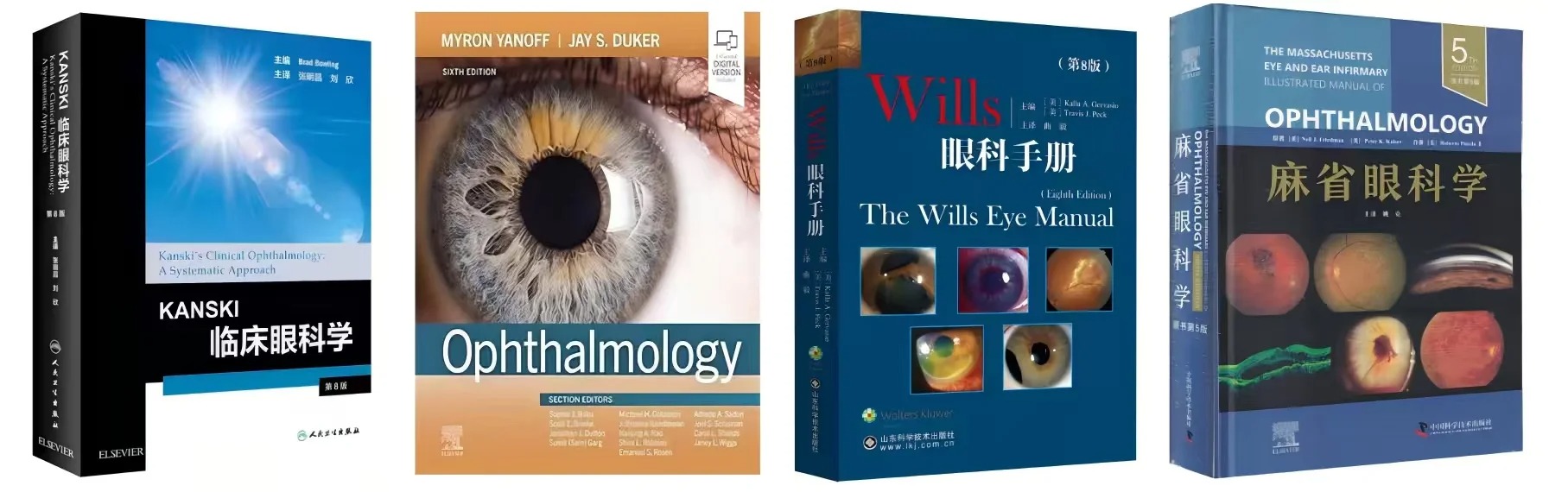 《Kanski临床眼科学》《Wills眼科手册》堪称全球眼科“圣经”,从疾病诊疗到急诊处理,内容权威又贴合临床,不管是日常学习还是临床参考,都能精准适配;还有《实用眼科学》《麻省眼科学》,都是国内临床常用的全科参考,接地气、好懂好用,不用啃晦涩的外文原版!